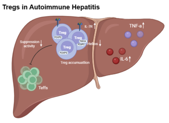 가톨릭대학교 서울성모병원 소화기내과 성필수 교수(교신저자) 연구팀 (제1저자 : 가톨릭의대 간연구소 석사과정 권미현)은 치료를 시작하지 않은 자가면역간염 환자의 혈액과 간 조직 검사를 분석한 결과, Treg가 수적으로는 증가했음에도 불안정한 기능으로 인해 면역 억제 능력이 저하되어 있다는 결과를 발표했다.