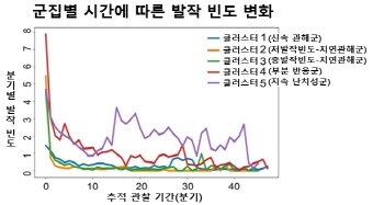 [그림2] 군집별 시간에 따른 발작 빈도 변화.