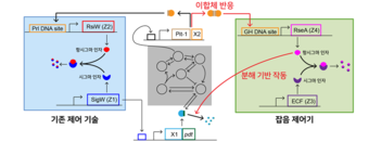 ▲그림】 잡음 제어기(NC)의 실제 생물학적 회로 구조 연구팀이 확립한 수학적 모델을 실제 생물학적 시스템인 유전자 회로로 구현한 모습.