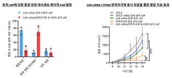 그림 1】 지질나노입자를 이용한 CAR mRNA와 면역자극제 동시 전달을 통한 생체 내 CAR-대식세포 생성 및 암세포 사멸 전략 모식도