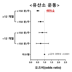 다만, 운동을 지속한 기간이 12개월 미만인 경우에는 유의미한 감소 효과가 나타나지 않았다.