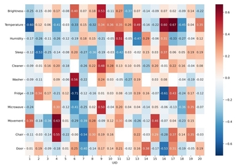 그림 1. 사용자별 정신건강 상태 및 센서 데이터 상관관계 히트맵