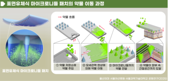 연구팀은 모세관력을 활용해 고용량의 약물이 스스로 피부 속 간질공간으로 유입되는 ‘표면유체식 마이크로니들 패치’를 개발했다. 모세관력은 액체가 아주 좁은 틈에서 외부 압력 없이도 스스로 퍼져나가는 힘이다.