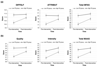 ▲ 챗봇 중재 기반 태교 프로그램 활용 전후를 비교한 결과, 배우자 지지 수준이 낮은 그룹(Low PS group)은 높은 그룹(High PS group)과 비교해 인지-행동적 모아 애착(MFAS) 및 정서적 모아 애착(MAAS) 점수가 더 큰 폭으로 증가했다.