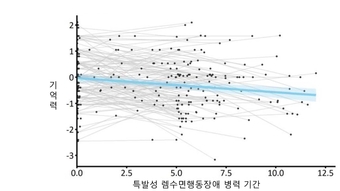 ▲[그림] 특발성 렘수면행동장애 병력 기간에 따른 인지기능(기억력)의 변화