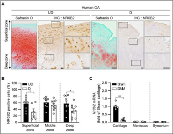 그림 2. 퇴행성 연골조직 내 SHP(NR0B2)의 발현 감소