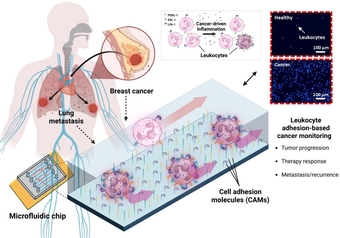 칩의 미세관에 혈액을 흘려보내 항암제 약효와 암 재발 여부를 읽어낼 수 있는 기술이 개발됐다. 혈액 속의 암세포를 직접 찾아내는 기존 액체 진단 기술과 달리 암 조직의 염증물질이 환자 백혈구 표면의 접착력을 증가시키는 원리를 이용한 기술이다. MRI, CT 같은 영상 검사가 놓치기 쉬운 미세 재발을 조기에 감지하고, 고가의 액체 생검 기술을 보완해 암 치료 경과를 살필 수 있게 됐다.