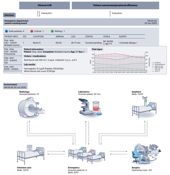 이 가상 병원에서는 AI의 개입 시점에 따라 위기 상황이 생생하게 구현된다. 가령 AI가 검사 처방을 지연시킬 경우 안정적이던 흉통 환자가 급성 심근경색으로 악화될 수 있다. 또한 AI가 특정 초응급 환자에게 CT 스캐너 등 핵심 자원을 우선 할당하면, 다른 환자들의 대기열이 길어지는 현실적인 병목 현상도 발생한다. AI의 결정 하나가 특정 환자의 생사를 가르는 것은 물론, 병원의 남은 자원마저 고갈시켜 다음 환자의 진료 기회를 연쇄적으로 제한하는 실제 병원 환경을 구현한 것이다.