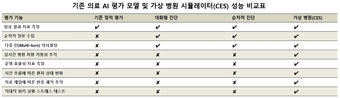 그림3] 기존 의료 AI 평가 모델과 가상 병원 시뮬레이터(CES)의 성능 비교.