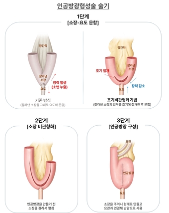 연구팀이 도입한 조기비관형화는 문합 이후 소장을 잘라서 펼칠 부분을 문합 전 미리 절개해 쉽게 당겨지도록 만든 뒤 요도와 문합하는 기법이다. 절개 없이 당겨서 쓰는 기존 방식에 비해 문합부가 벌어지게 하는 힘을 크게 줄여 요누출을 예방할 수 있다.