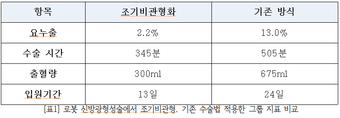 [표1] 로봇 신방광형성술에서 조기비관형, 기존 수술법 적용한 그룹 지표 비교