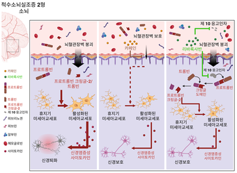국내 연구진이 희귀 퇴행성 소뇌질환인 소뇌실조증*의 증상을 악화시키는 새로운 병리 기전을 규명하고, 이를 바탕으로 예방적 치료 가능성을 제시했다. 혈액 내 단백질이 소뇌에 쌓이며 염증을 일으키는 과정을 밝혀냄으로써, 향후 난치성 뇌질환 치료제 개발에 중요한 전기가 마련될 것으로 기대된다.