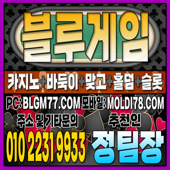 지금 바로 블루게임(바둑이,맞고,홀덤,슬롯,바카라)에서 검증된 온라인 게임을 시작하세요!정기적인 업데이트와 최신 정보 안내를 통해 항상 신뢰할 수 있는 서비스를 제공합니다. 소액 및 고액 금액에 관계없이 모두가 공평한 대우를 받으며, 타 업체 대비 높은 수익률을 기대할 수 있습니다.