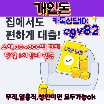 개인돈 /비상금/소액급전/사업자대출5억/ 무직.직장인.신용불량자도ok 당일입금ok 카톡:cgv82 편하게 문의주세요.