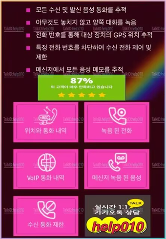 주의할점:(본 업체는 고개님들 요구하시면 최소한 실제상대폰 감시앱(복제폰)툴은 확인시켜드리고 꼭 구매하실분들한텐 실제테스트결과 보여드리며 이 기본적인것도 없으면서 선입요구하는곳은 100%허위업체이기때문에 꼭 유의하시길 바랍니다)