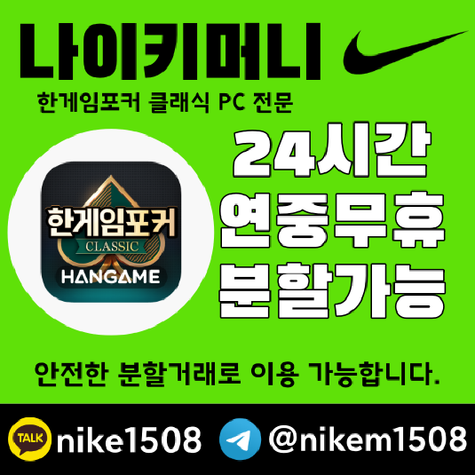 #한게임머니상 #나이키머니상 #게임머니충전 #머니거래 #포커머니 #섯다머니 #빠른입금 #고객만족#한게임포커 #한게임머니상가이드 #분할거래 #한게임포커클래식 #모바일한게임포커