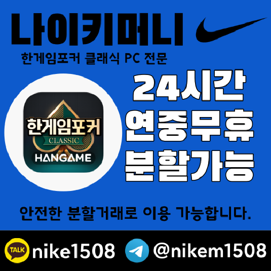 #한게임머니상 #나이키머니상 #게임머니충전 #머니거래 #포커머니 #섯다머니 #빠른입금 #고객만족#한게임포커 #한게임머니상가이드 #분할거래 #한게임포커클래식 #모바일한게임포커