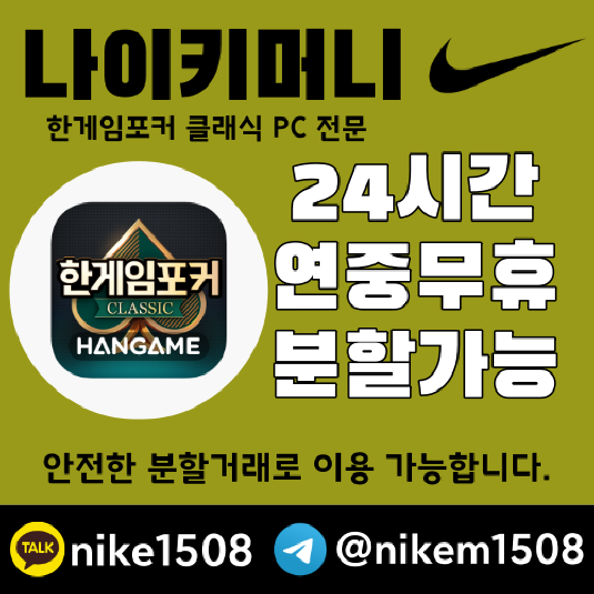 #한게임머니상 #나이키머니상 #게임머니충전 #머니거래 #포커머니 #섯다머니 #빠른입금 #고객만족#한게임포커 #한게임머니상가이드 #분할거래 #한게임포커클래식 #모바일한게임포커