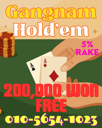 Call today and join my poker home game in Gangnam! We welcome foreigners and Koreans alike. I host a private game with free food, 5% rake, and big bonuses for newcomers. Come see why people skip Walker Hill and come here!