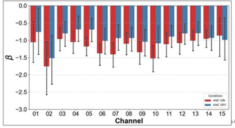 특히 오른쪽 전두엽의 일부(5번 및 7번 채널)에서 액티브 노이즈 캔슬링 활성화/비활성화 조건 간에 혈중 산소 헤모글로빈 농도 변화가 유의하게 차이가 났다. 연구팀은 소음 상황에서 듣고자 하는 소리에 선택적으로 주의를 기울이는 과정에서 오른쪽 반구가 더 활발히 반응하며, 이때 오른쪽 측두엽 등이 활발해져 인접한 오른쪽 전전두엽 피질의 혈류 공급이 대조적으로 감소했다고 분석했다.