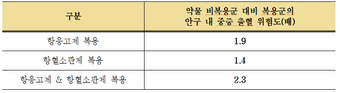▲표. 항혈전제 복용(종류) 여부에 따른 안구 내 출혈 위험도 분석 결과