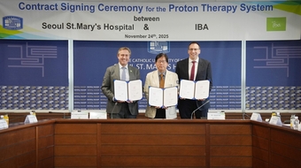 가톨릭대학교 서울성모병원 (병원장 이지열 교수)은 11월 24일 오후 3시 병원 21층 대회의실에서 양성자 입자 치료 솔루션 분야의 글로벌 선두 기업인 IBA(Ion Beam Application)와 전 세계에서 가장 진보된 양성자 치료 시스템 'IBA Proteus Plus' 도입 본계약을 체결했다.