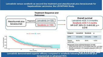 전홍재, 김정선 교수 연구팀은 2018년 5월부터 2024년 10월까지 A+B 치료를 받은 1,210명의 환자 중 230명을 선별해 분석했으며, 이 가운데 125명은 렌바티닙, 105명은 소라페닙을 2차 치료제로 투여했다. 두 치료군 간 특성의 차이를 최소화하기 위해 성향점수 매칭(Propensity Score Matching, PSM) 기법을 적용하여 두 군 간 비교의 객관성을 높였다