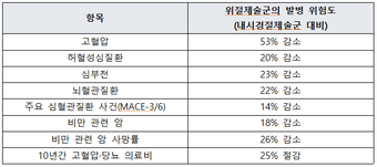 연구에 따르면 위절제술군은 내시경 절제술군에 비해 고혈압은 약 53%, 허혈성심질환·심부전·뇌혈관질환은 약 20%, 주요 심혈관질환 사건 발생률(MACE-3/6 지표)은 약 14% 낮게 나타났다.