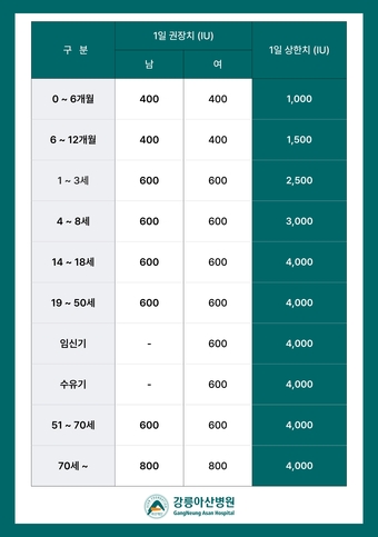 강릉아산병원 소아청소년과 박기영 교수는 “생후 6개월 이후의 소아기와 급성장기 청소년기에는 적절한 비타민 D 섭취가 매우 중요하다”며, “부족하면 뼈 성장 저하나 골밀도 저하가 생길 수 있다”고 설명했다.