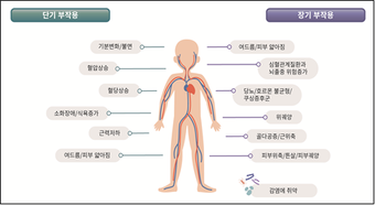 (그림 1) 전신 스테로이드 사용과 관련된 다양한 단기 및 장기 부작용