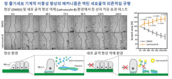 특히 세포 골격 단백질 결합과 액틴(Actin) 결합 단백질의 발현이 증가하면서, 세포 내부 구조가 안정적으로 재편되고 줄기세포가 기판 위에서 더 빠르고 활발하게 이동할 수 있는 힘의 원천이 형성됨을 확인했다.