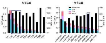 분석 결과, 주요 항경련제 단일요법 가운데서는 발프로산(0.686), 라모트리진(0.674), 옥스카르바제핀(0.633) 순으로 치료 반응 예측력(AUC)이 높게 나타났다. 병용요법 중에서는 카르바마제핀과 레비티라세탐 병용(CBM+LEV) 요법이 가장 높은 예측력(AUC 0.764)을 보였다.