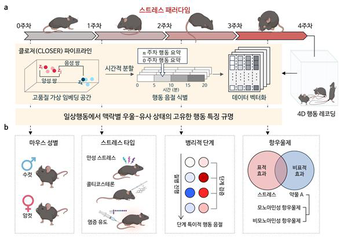 KAIST은 생명과학과 허원도 석좌교수 연구팀이 동물 모델의 일상적인 행동 패턴을 분석할 수 있는 인공지능(AI) 기술을 개발하고, 이를 통해 일상행동 속에서 성별과 중증도에 따른 우울증 증상을 탐지할 수 있음을 입증했다고 13일 밝혔다.