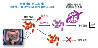 김희남 교수는 이 공백을 메울 수 있는 새로운 해석을 제시했다. 항생제가 장내 핵심 유익균인 ‘아커만시아(Akkermansia)’를 단순히 감소시키는데 그치지 않고, 그 유익 기능을 손상된 돌연변이 형태로 바꿔 놓았을 가능성에 주목했다. 이러한 변이 균주들이 세계적으로 확산되면서 인류 전반의 대사질환 위험을 높였을 수 있다는 것이다.
