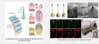 또한, 개발된 나노섬유 마이크로 니들은 유연성이 뛰어나 장시간 착용해도 피부 통증이나 이물감이 거의 없고, 내부에 형성된 나노~마이크로 크기의 미세 다공구조로 우수한 통기성을 확보해 장시간 부착해도 피부 발진을 현저히 줄일 수 있다.