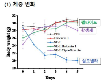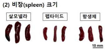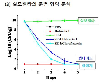 이번 연구 결과는 인공지능 기술로 찾아낸 펩타이드가 살모넬라 감염으로 인한 장 염증을 효과적으로 완화하는 것을 실험 결과로 확인했으며, 염증 유발 물질의 분비를 조절하고 장 점막을 보호하는 작용도 나타났다. 이로 인해 살모넬라 균에 의한 장질환 감소율은 기존 항생제인 키프로플록사신의 87.78%보다 높은 89.17%로 나타났다.