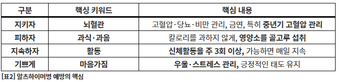 또 하나 중요한 원칙은 활동을 지속하는 것이다. 걷기처럼 부담 없는 신체활동을 주 3회 이상, 가능하면 매일 실천하는 것이 도움이 되며, 여기에 자신에게 맞는 취미나 사회적 활동을 더하면 효과가 커진다.