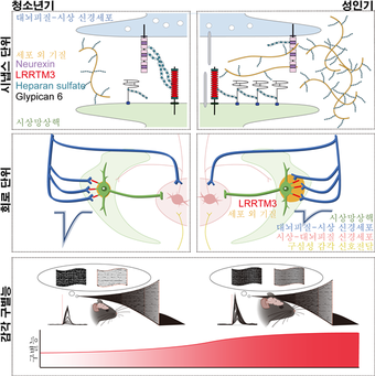 인간이 복잡한 환경 속에서 적응하며 살아갈 수 있는 이유는 쏟아지는 자극 중 중요한 정보만을 선별해 받아들이는 능력 덕분이다. 이때 뇌 시상부에 위치한 시상망상핵(thalamic reticular nucleus; TRN)은 외부 자극이 대뇌 피질로 전달되기 전 이를 조절하는 ‘감각 검문소’ 역할을 한다. 그동안 학계에서는 이 검문소의 설계가 아동기 시절의 ‘결정적 시기(critical period)’를 지나면 고정된다고 보았다. 그러나 연구팀은 생쥐 모델의 발달 단계를 정밀 분석하여, 청소년기에서 성인기로 이행되는 과정에서 TRN 회로가 재구성을 거친다는 사실을 확인했다.
