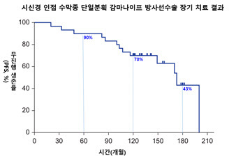◆감마나이프 방사선수술을 받은 환자를 장기 추적한 결과, 5년 무진행 생존율은 90%, 10년 70%, 15년 43%로 나타났다.